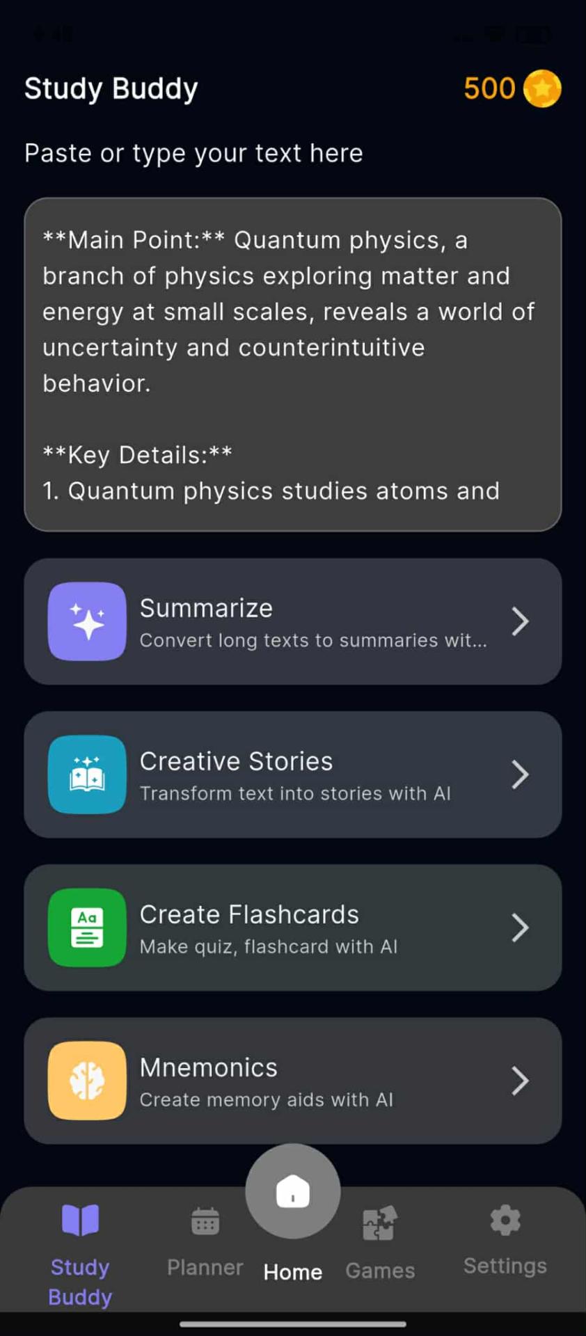 An AI-powered learning companion that transforms your study experience through intelligent text processing, creative learning tools, and memory enhancement techniques.